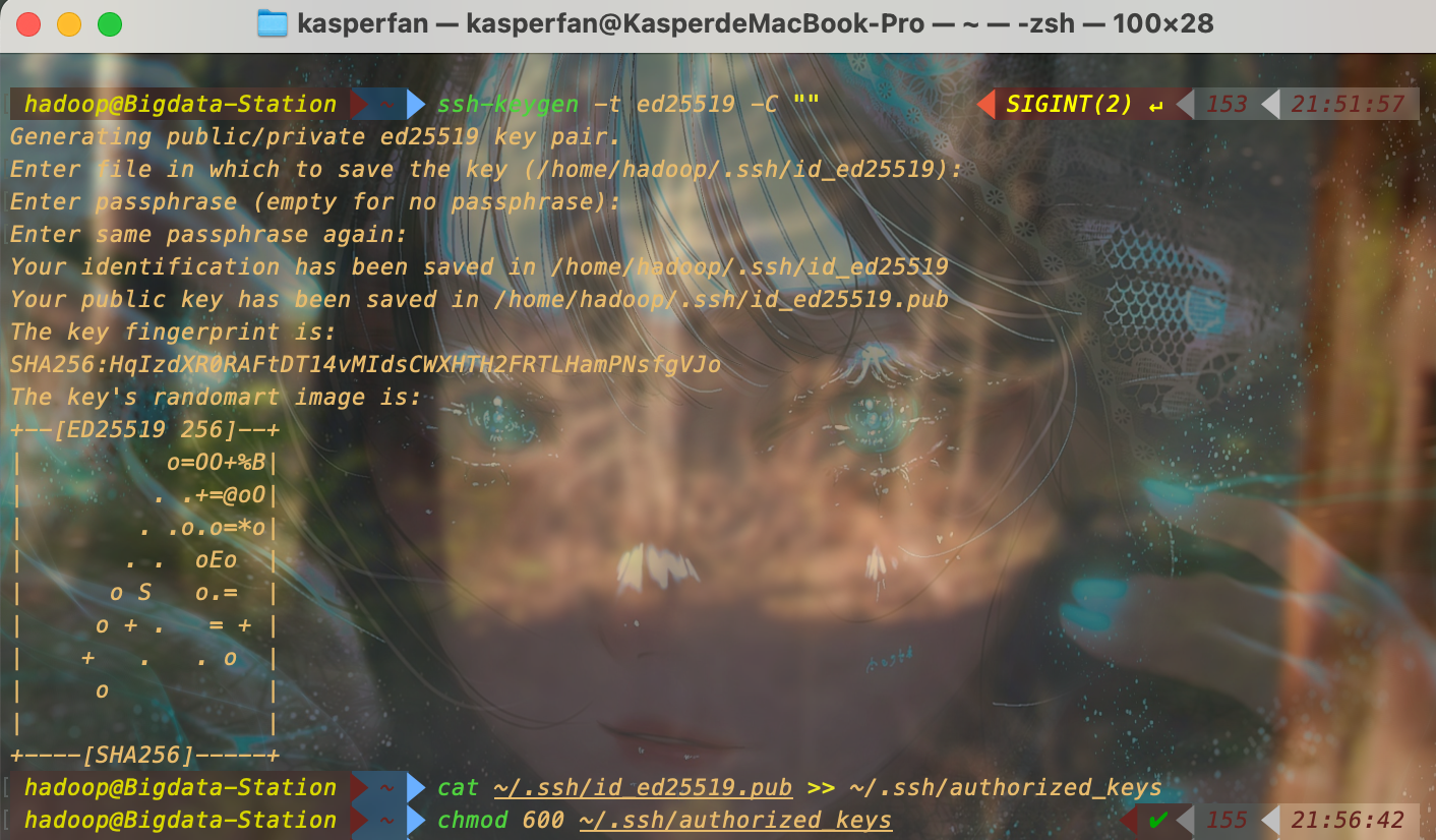使用以下命令完成 ssh 免密登录的配置