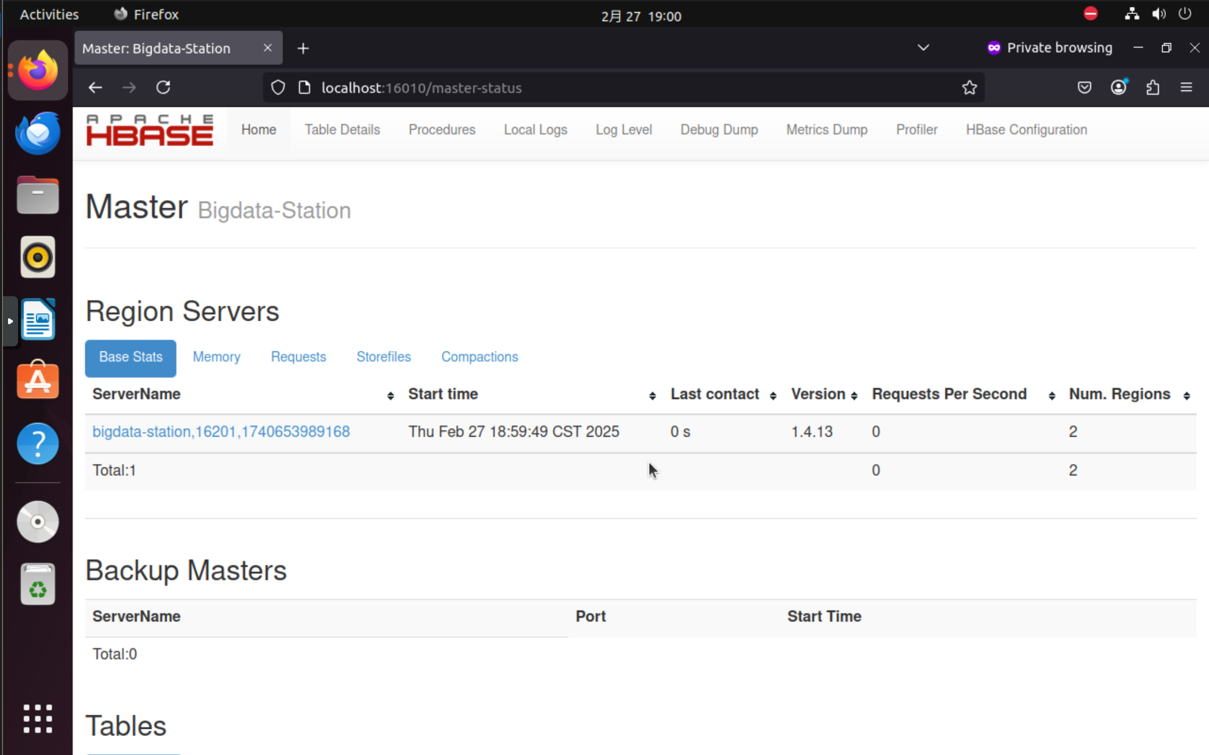 localhost:16010,出现以下界面说明 HBase Web UI 已经成功运行。