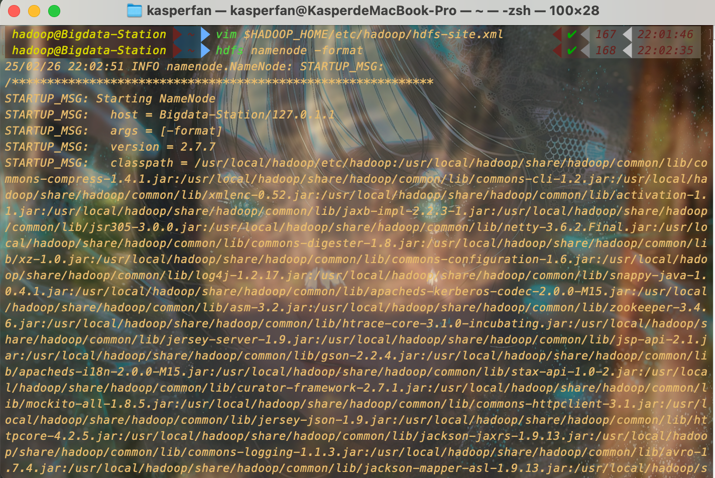 echo "export PATH=\$PATH:\$HADOOP_HOME/bin:\$HADOOP_HOME/sbin" >> ~/.zshrc完成后使用命令